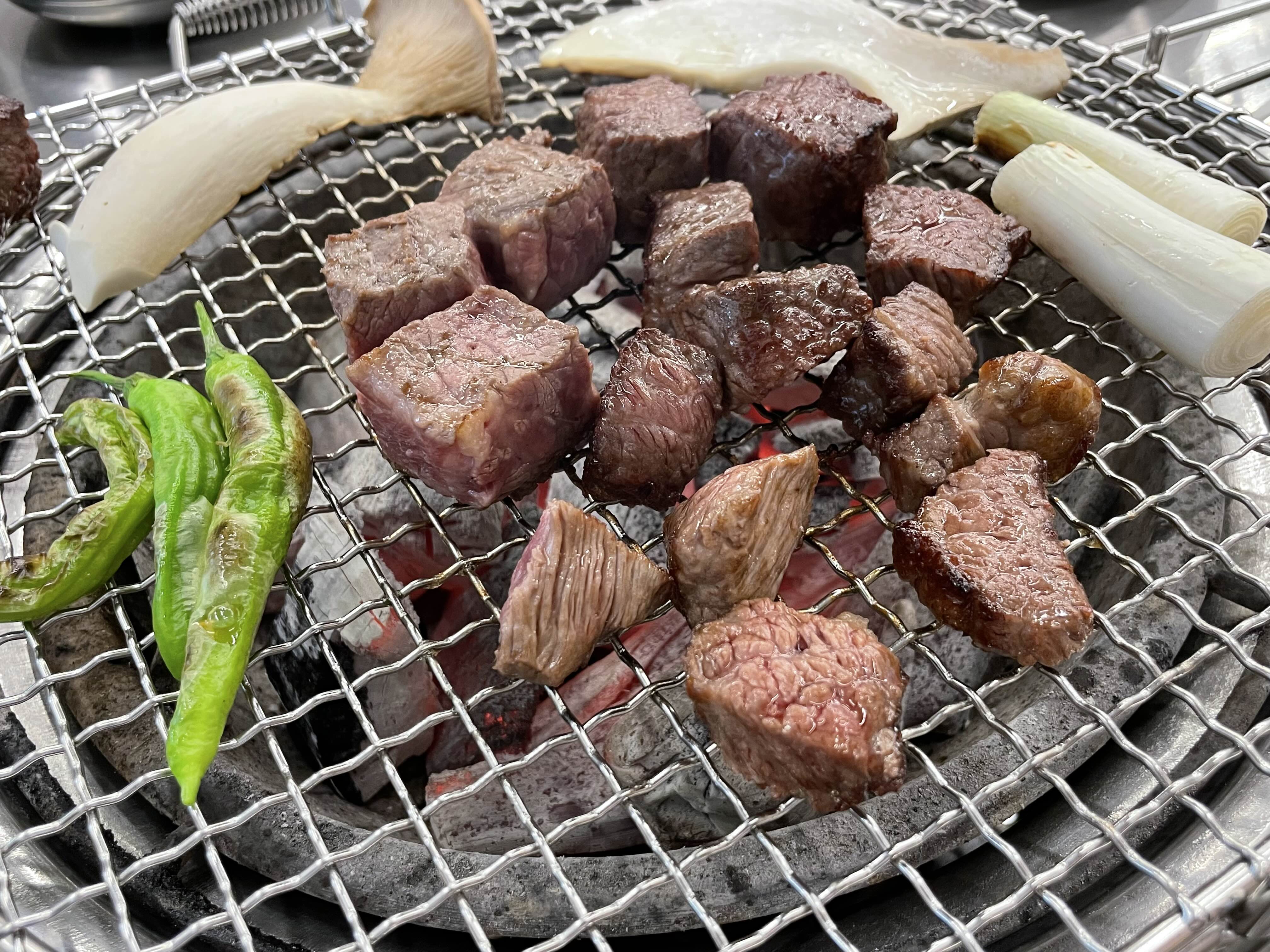 요즘 이렇게 깍둑 고기나 즉석에서 구워주는 양념 갈빗살을 파는 가게가 꽤나 많은데 여기도 그런 가게라 평타는 치겠지 싶었는데 생각보다 맛있게 잘 먹었다.