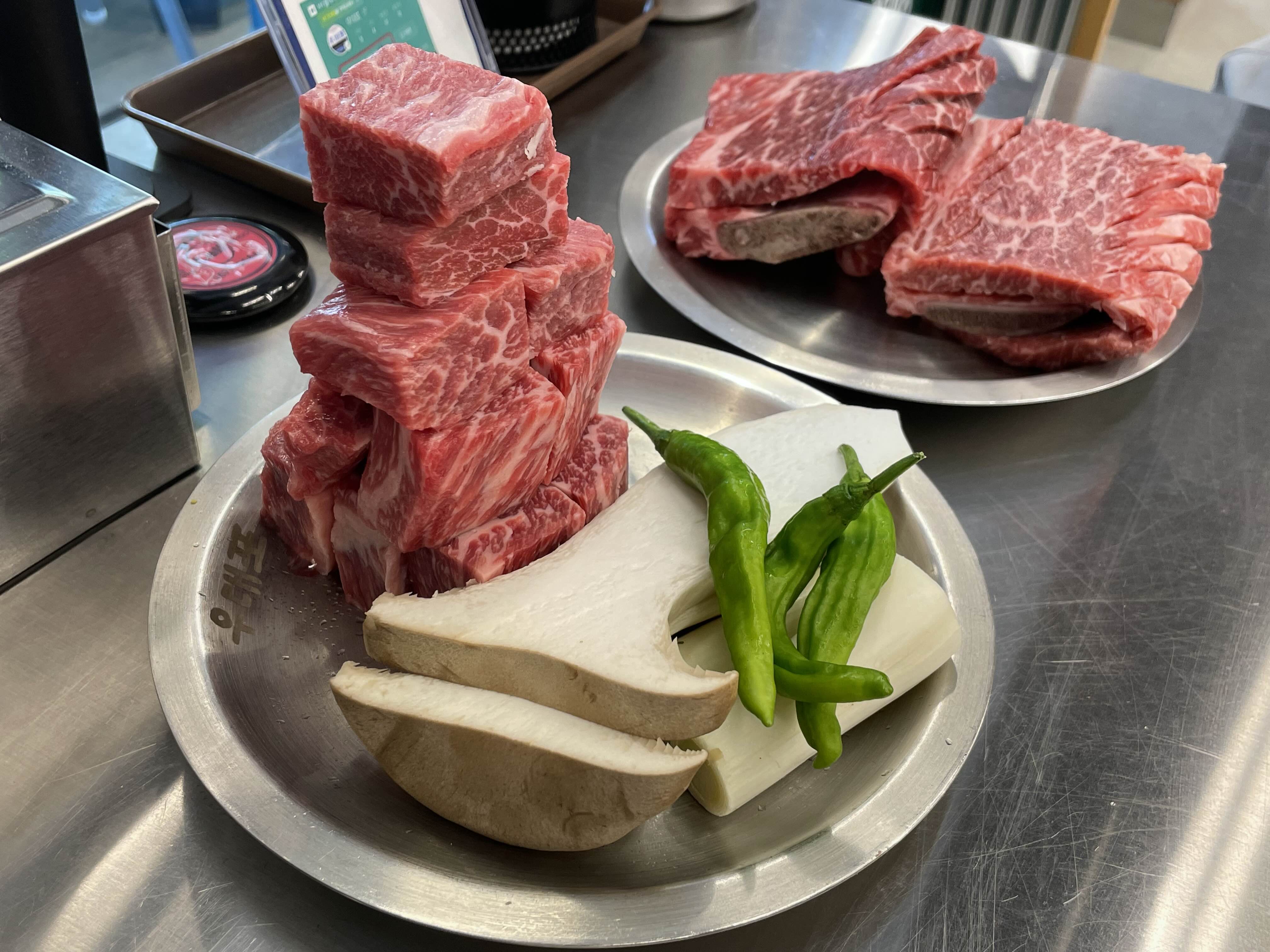 처음 온 것이고 첫 시작은 생고기로 시작해야 할 것 같아서 생 왕갈비랑 깍둑꽃살 주문했다.