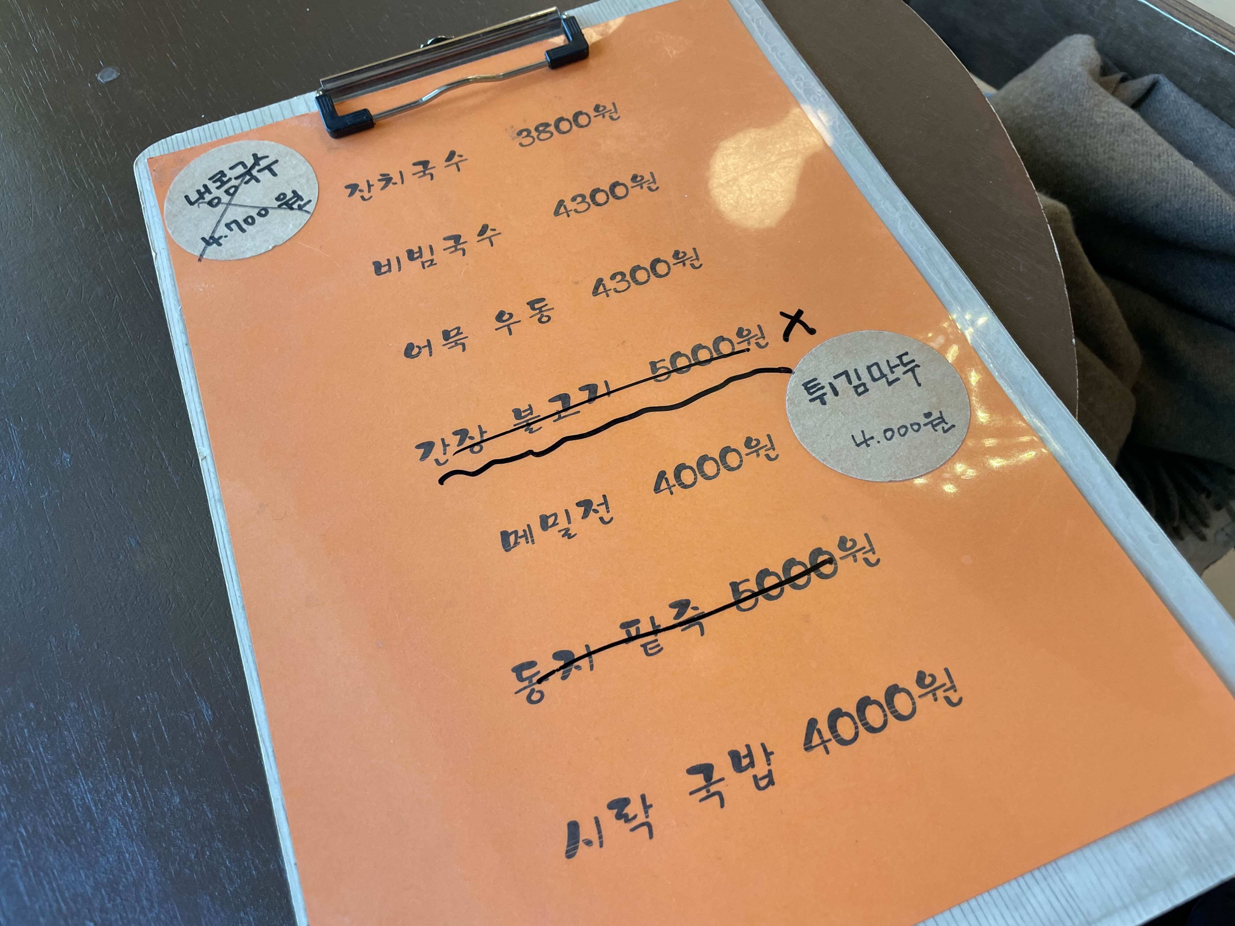 자리에 앉으니 할머님이 메뉴판을 가져다주셨다.