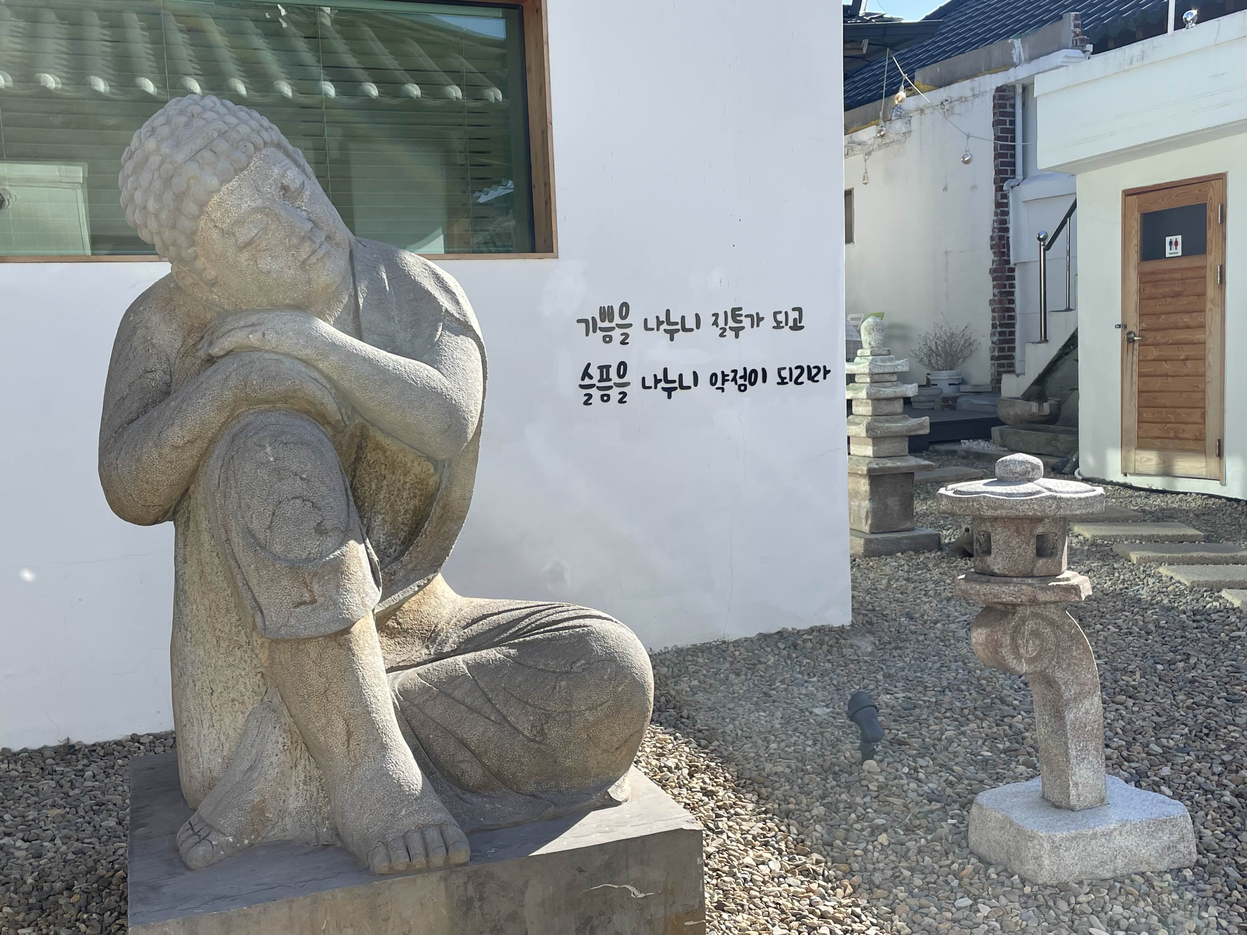 입구에 불상이 있고 기쁨을 나누니 질투가 되고 슬픔을 나누니 약점이 되리라는 문구가 눈에 들어온다.