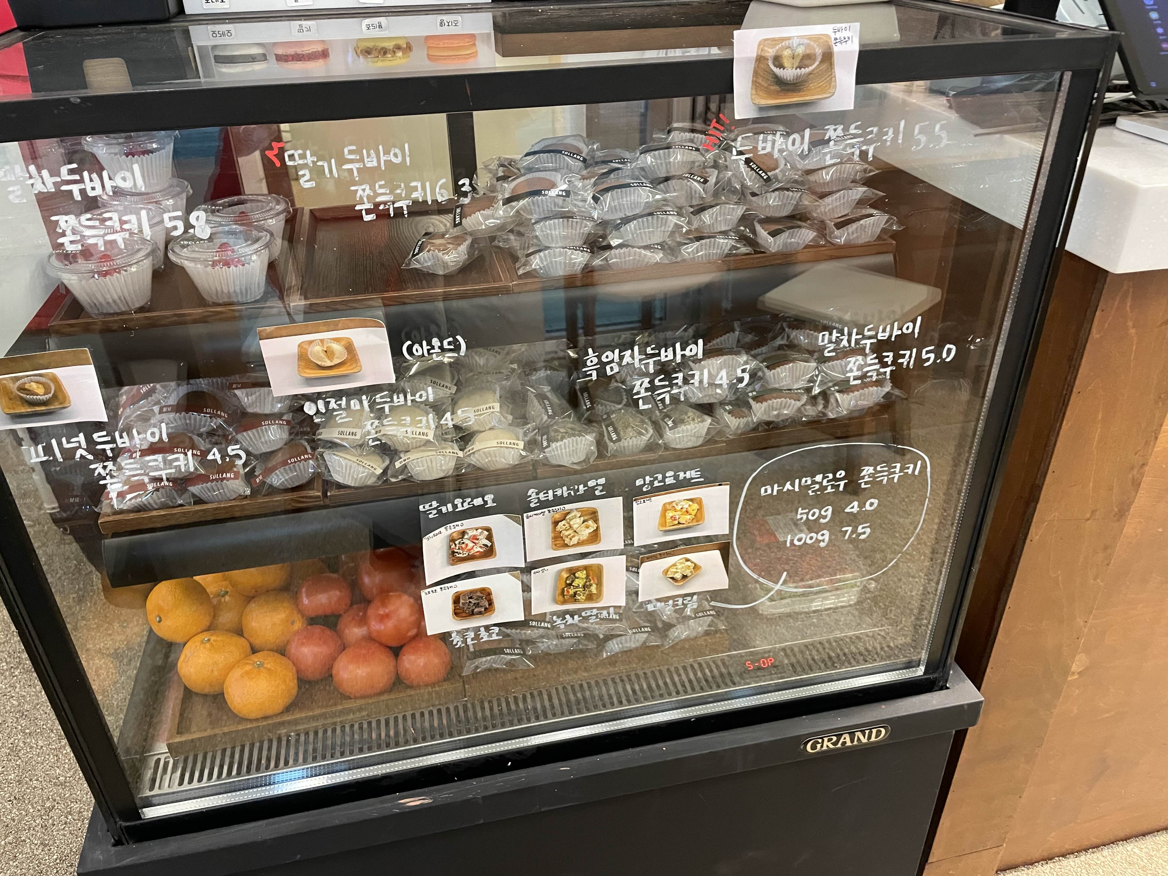 쇼케이스에 두바이 쫀득 쿠키가 다양하게 있었다.