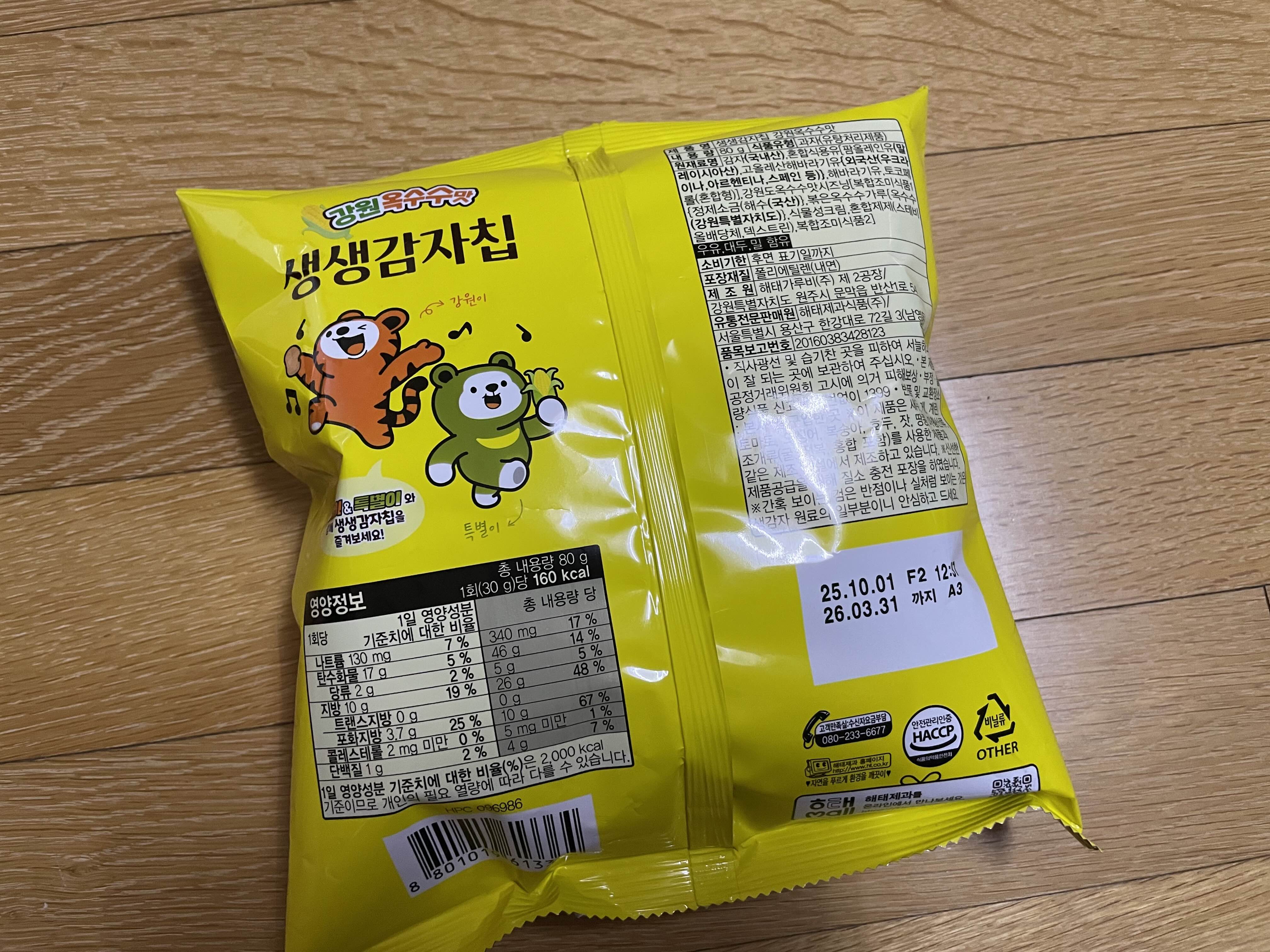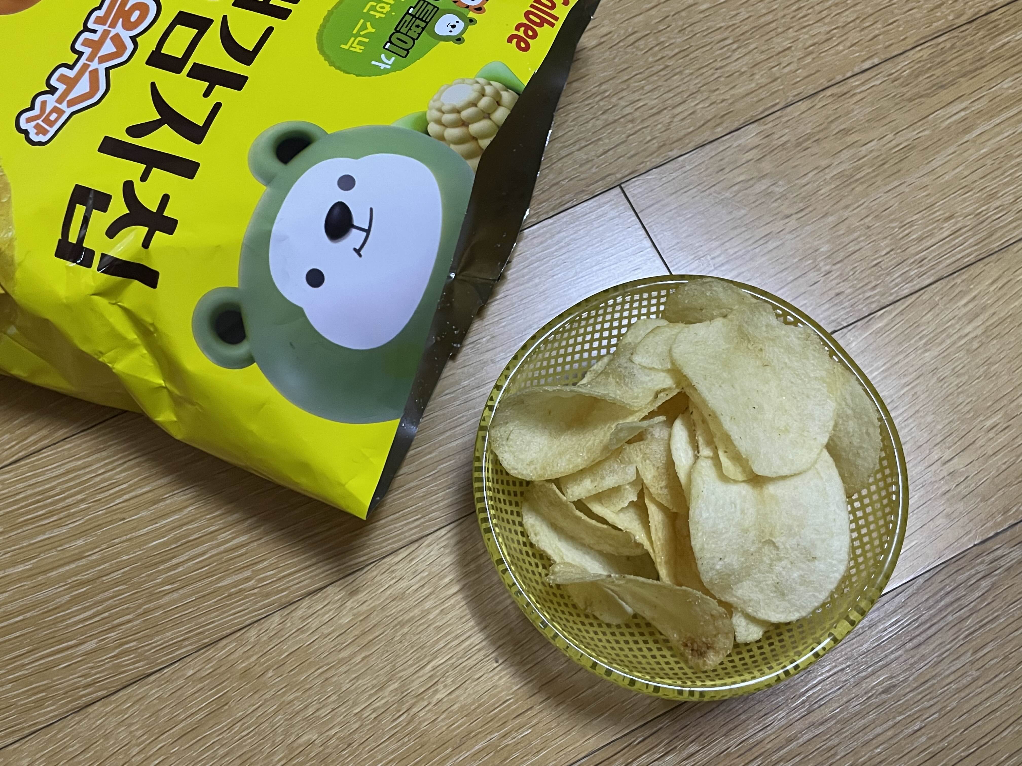잘 안보이지만 국내산 감자와 강원 옥수수 시즈닝이 사용되었고 영양정보는 위와 같다.
