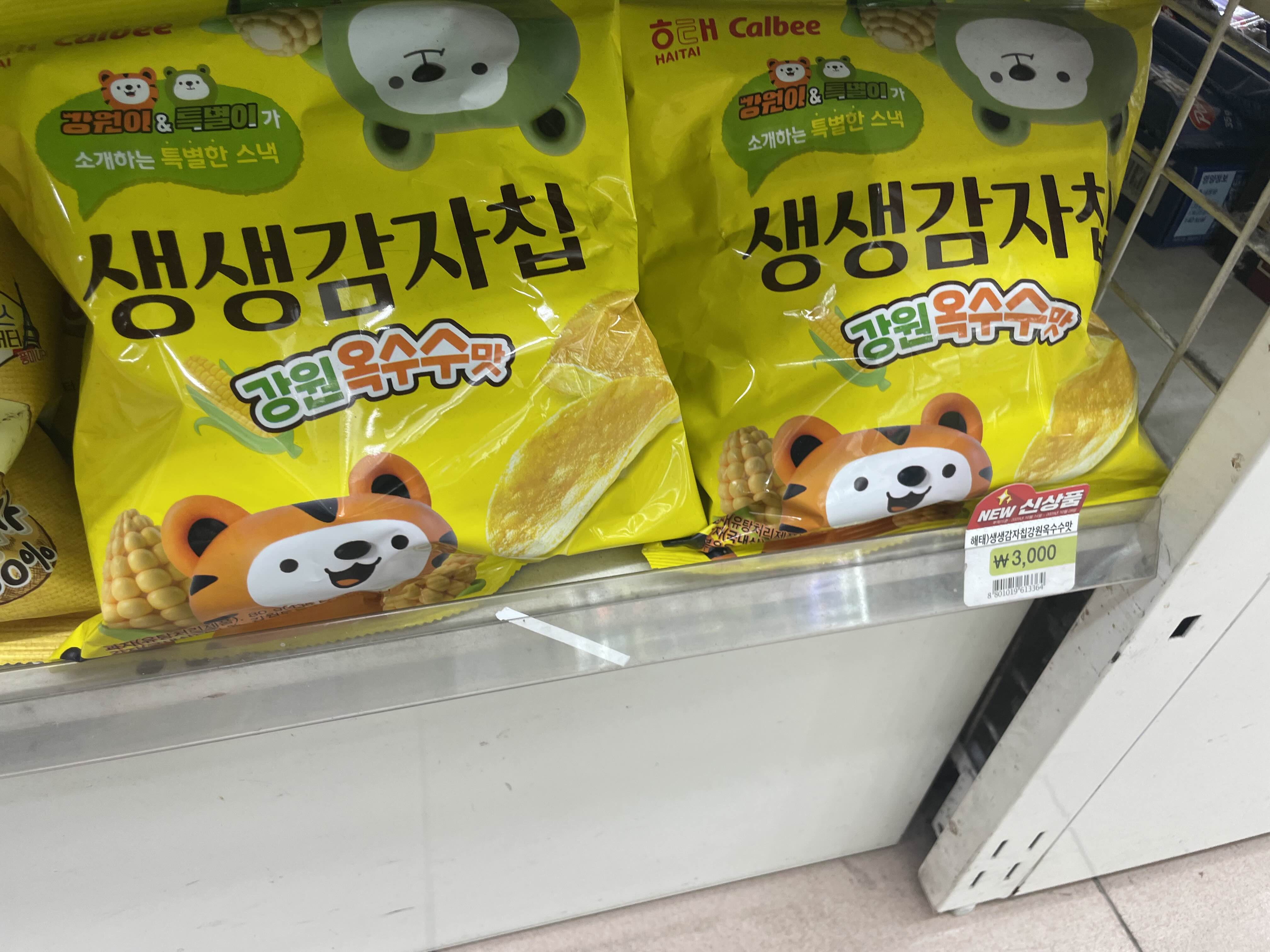 퇴근길에 배가 너무 고파서 뭐라도 사 먹으려고 세븐 일레븐 들어갔다가 보게 된 생생감자칩 강원옥수수맛