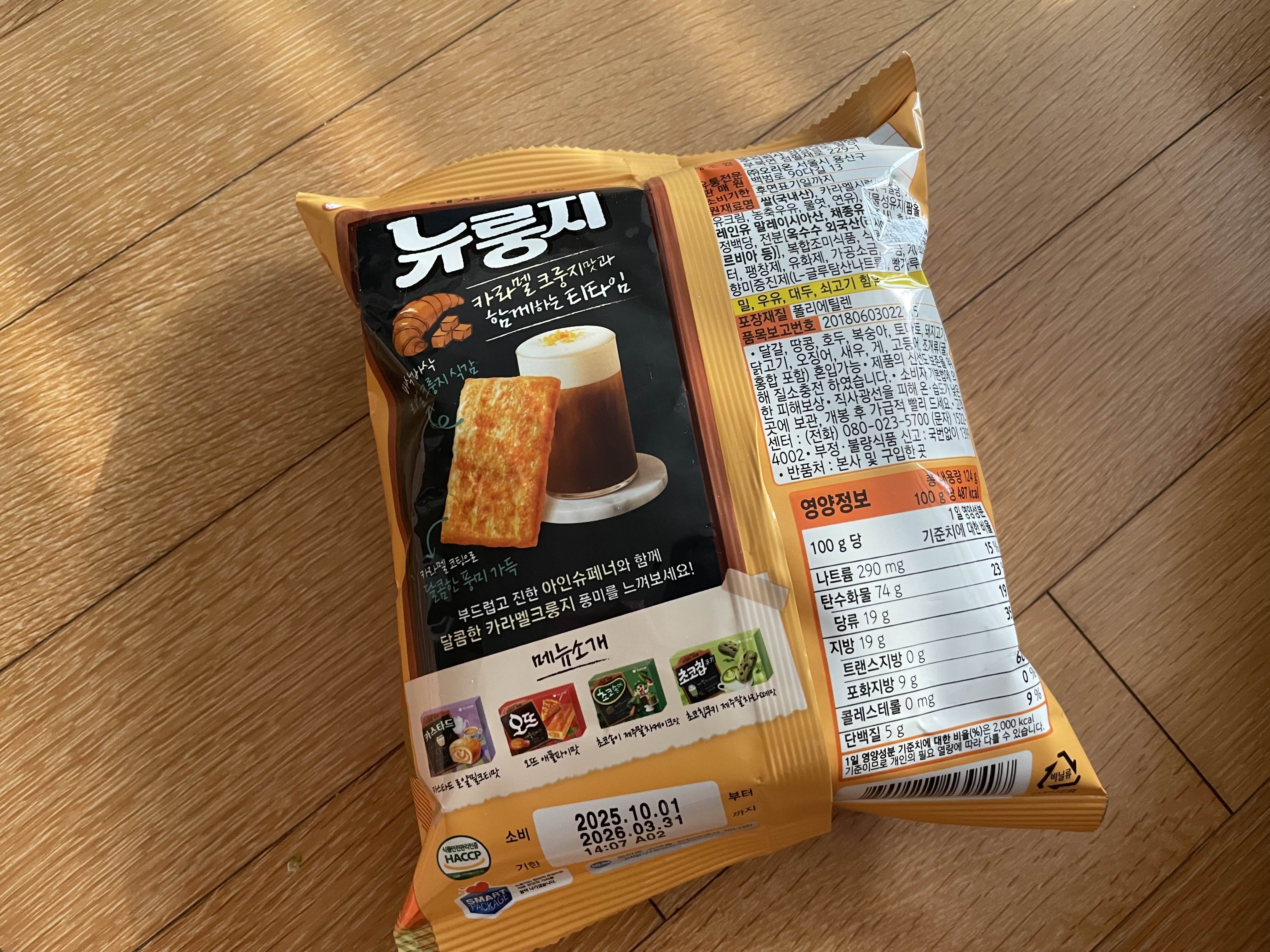 그냥 뉴룽지도 맛있는데 캐러멜맛이라 얼마나 더 맛있을까 싶어서 기대되었다.