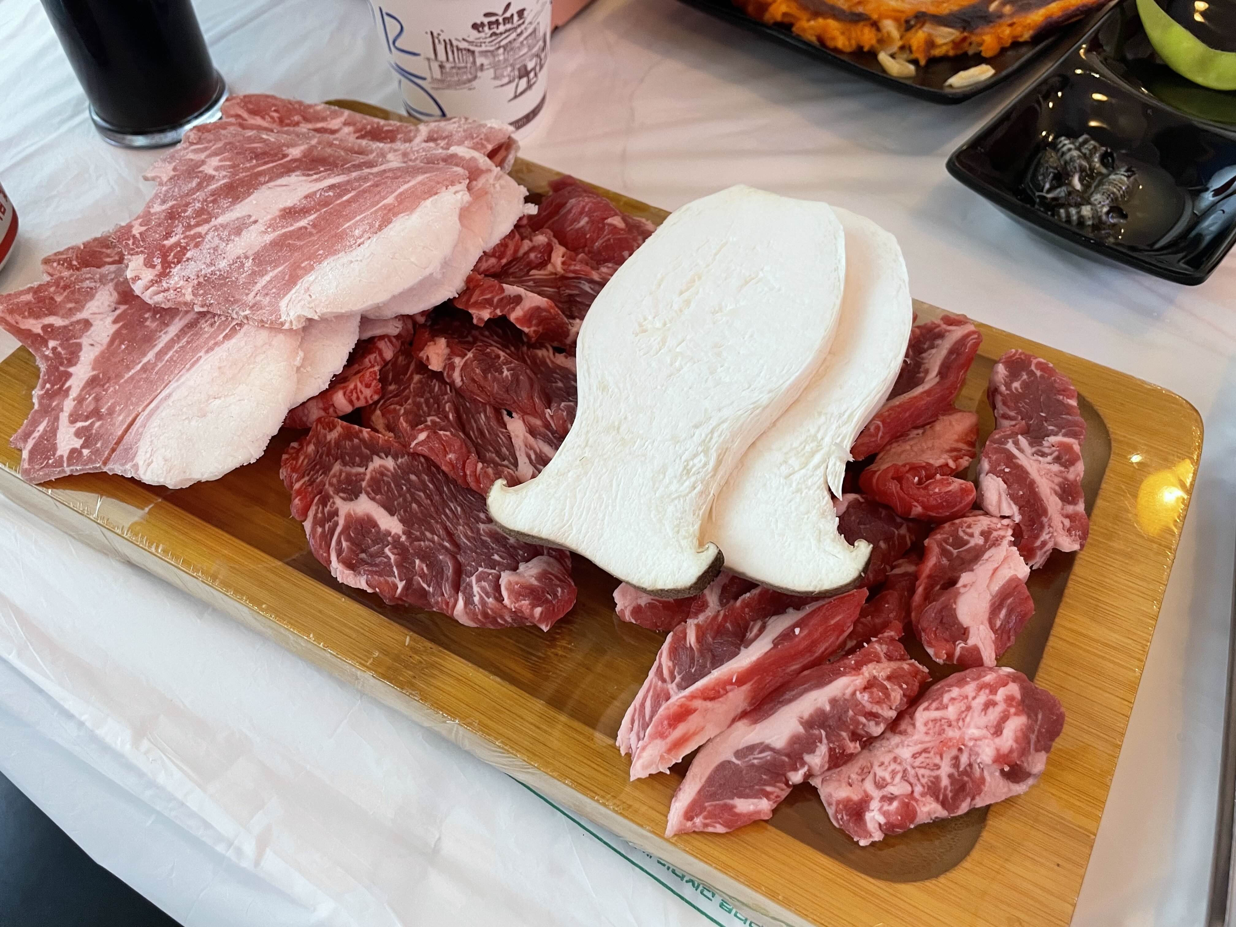 고기는 모듬으로 섞어서 나왔는데