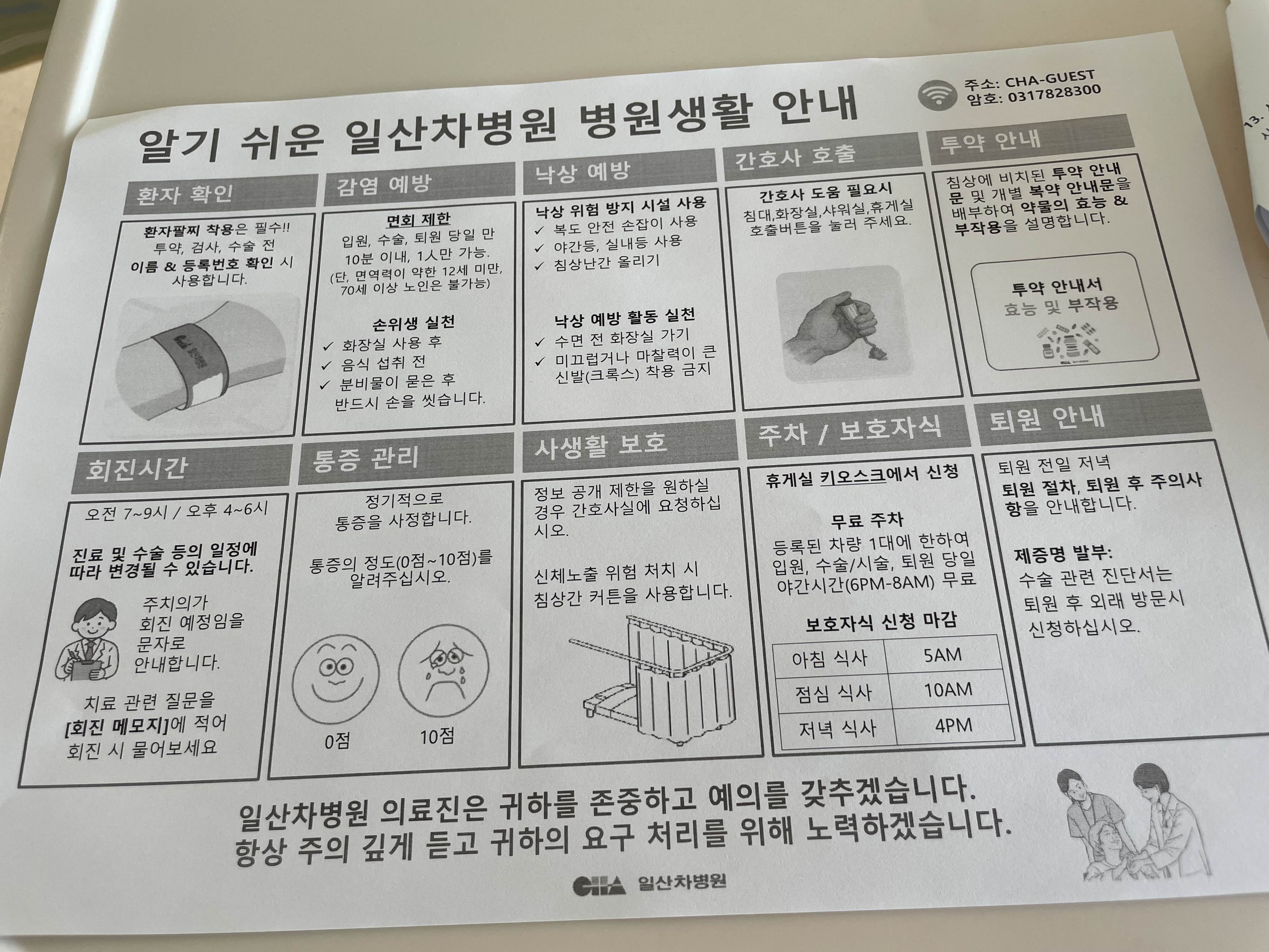 4인실은 통합병동이라 보호자 상주가 불가한데, 덕분에 부모님이 늙은 자녀 수발 안 들어도 되어서 좋은 것 같다.