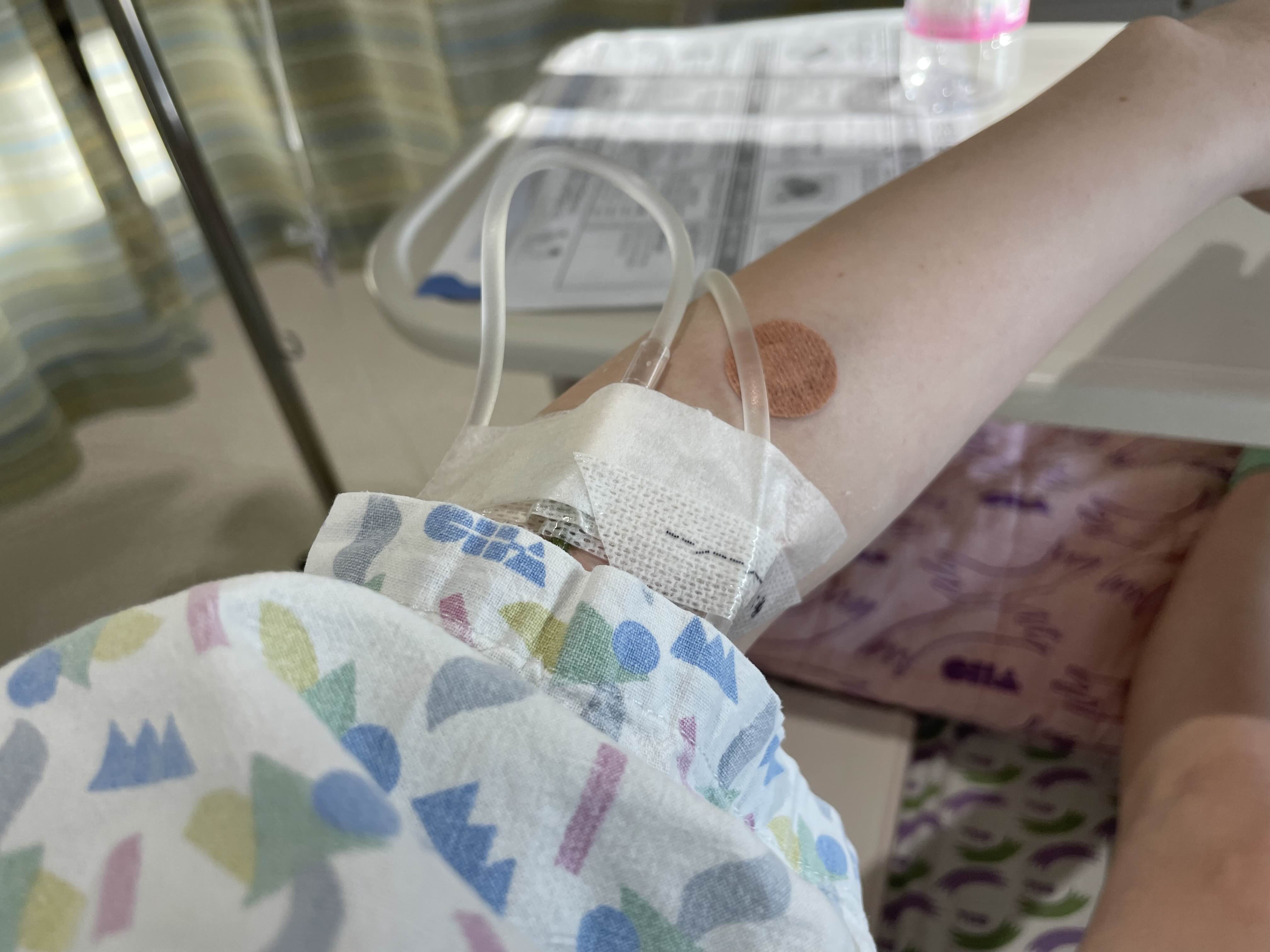 수액 바늘 넣다가 한 번 혈관 터지고 새로 넣었다.