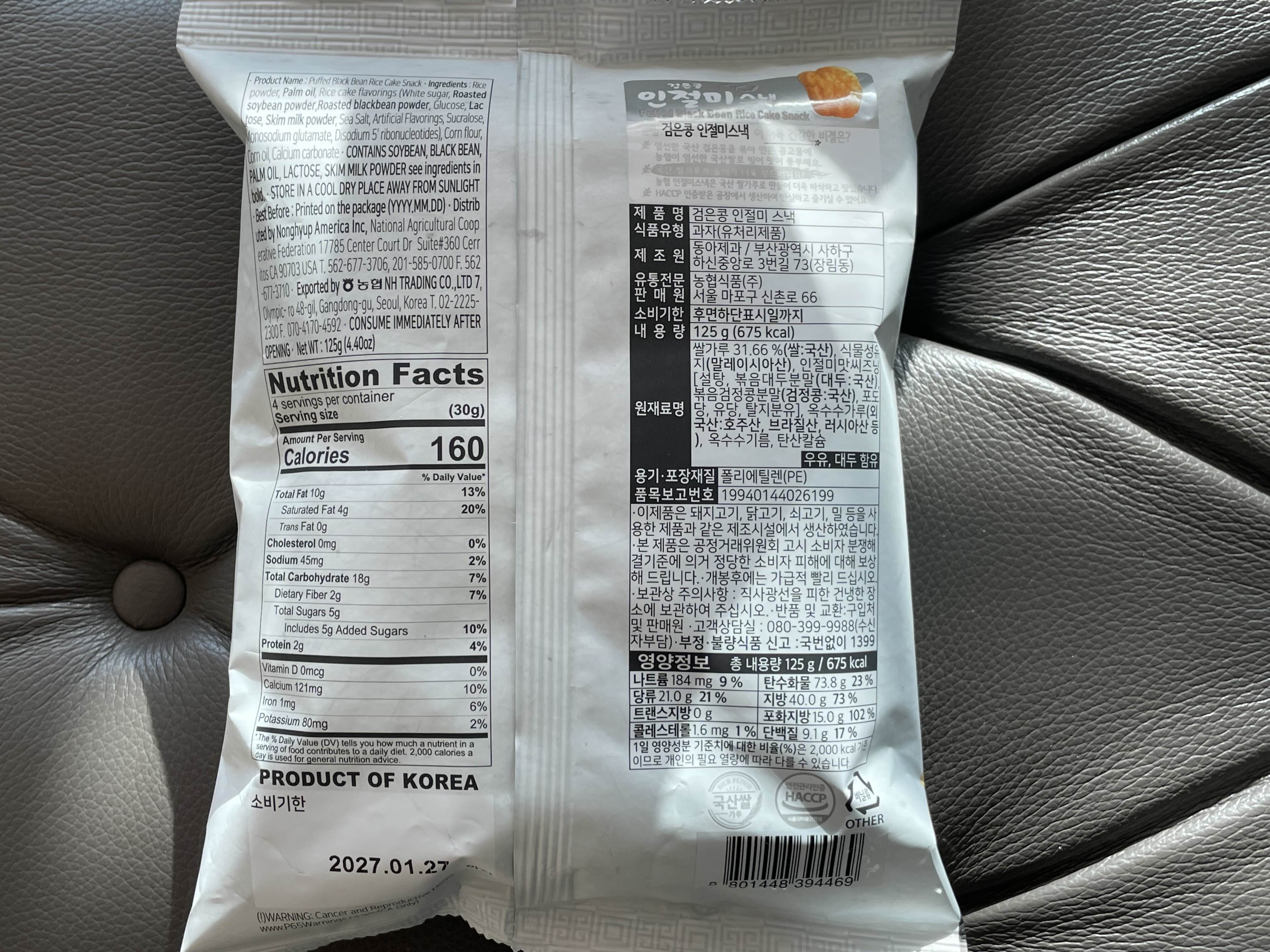 농협 하나로 마트 담게 인절미 과자들이 있길래 검은콩 인절미 스낵 하나 구매했다.