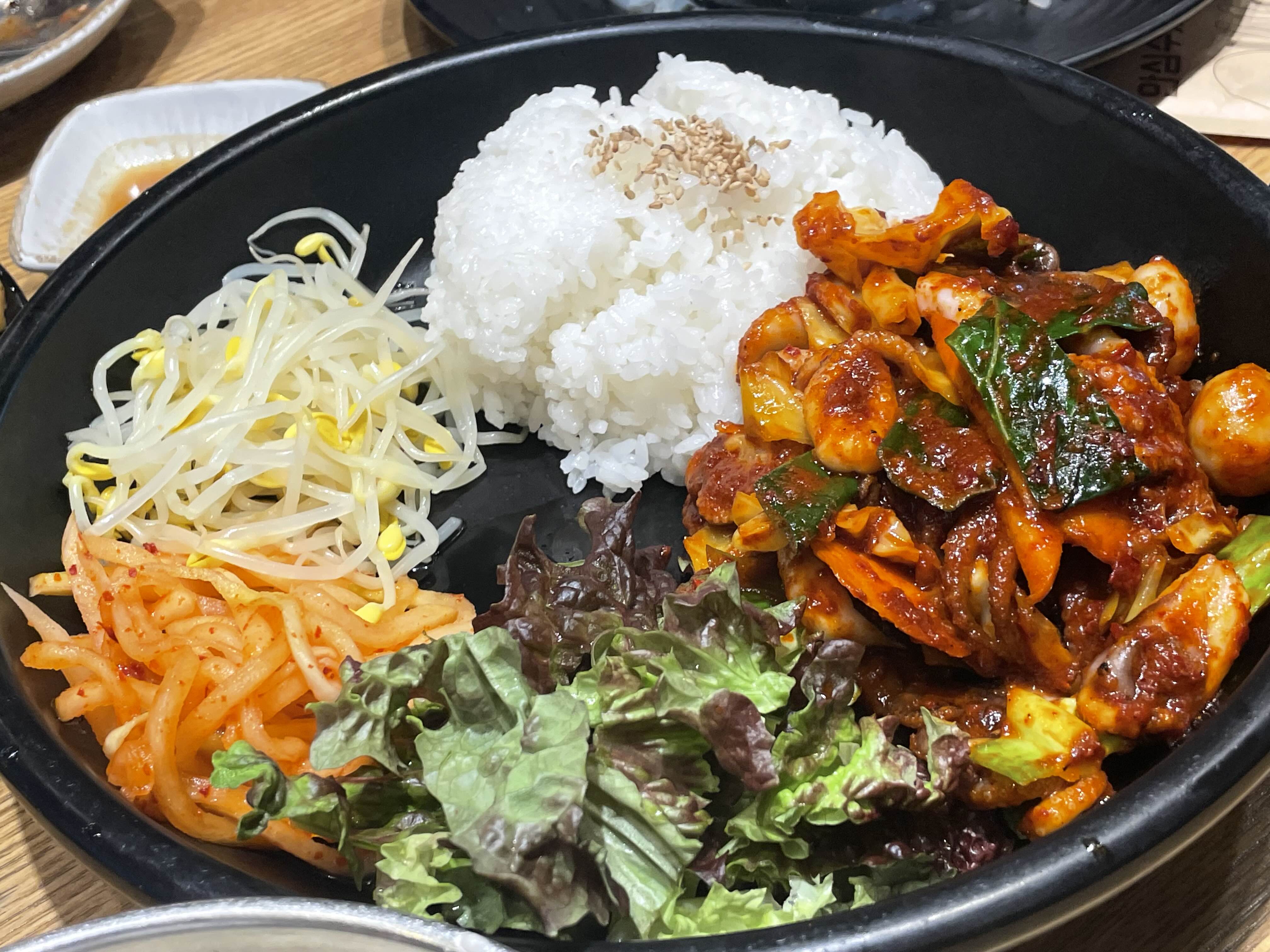 우리는 따로 비비지 않고 주꾸미랑 밥 그리고 콩나물을 따로 먹다가 마지막에 비벼서 한 번에 먹었다.