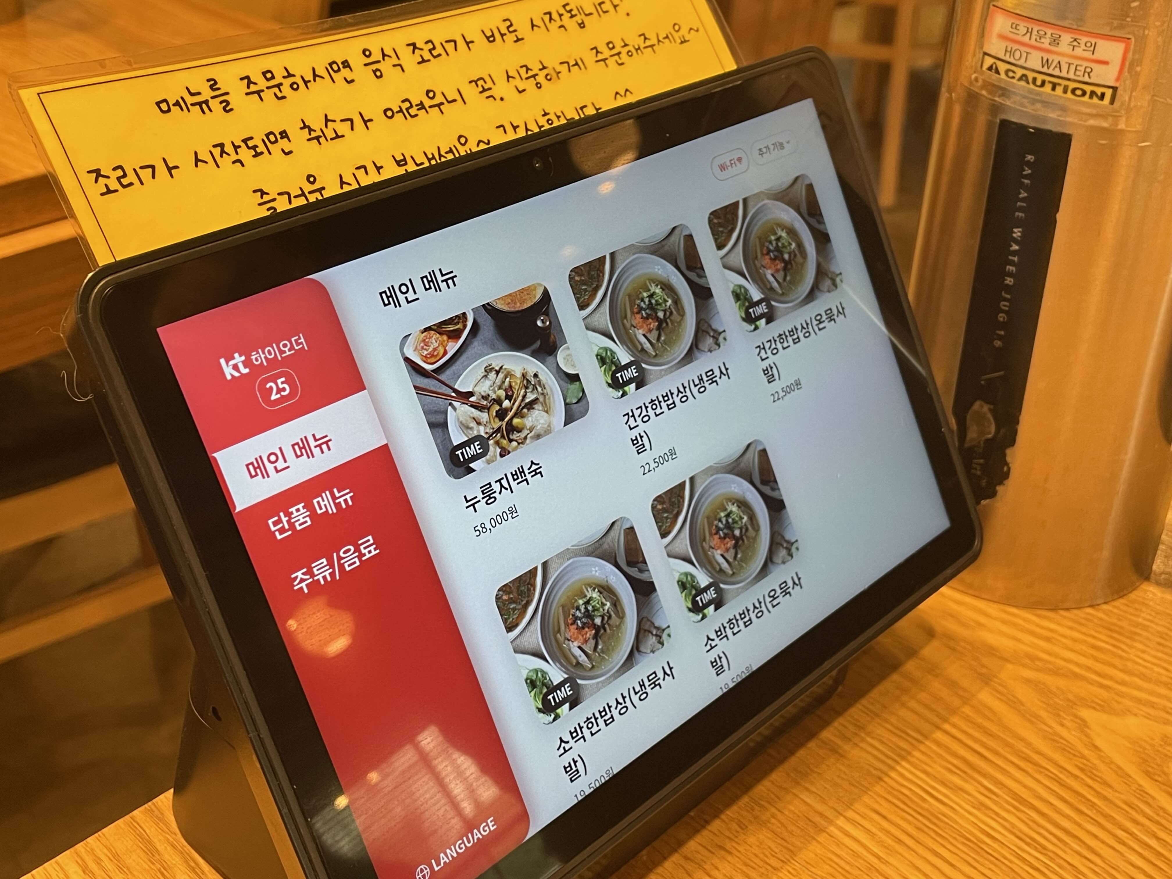 주문은 이렇게 패드를 통해서 하는데, 묵사발이 차가운 묵사발과 따뜻한 온 묵사발 모두 있어서